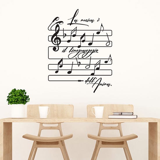 Stickers murali con note e pentagramma che donano l’effetto di un dipinto sul muro e riportano la frase: