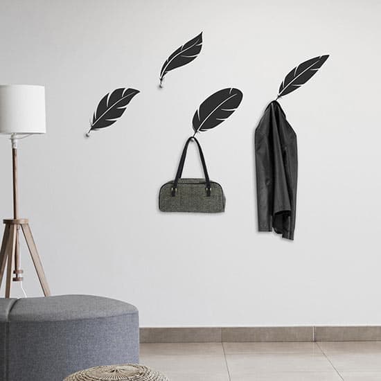 Adesivi murali appendiabiti piume, decorazioni da parete utili come attaccapanni.