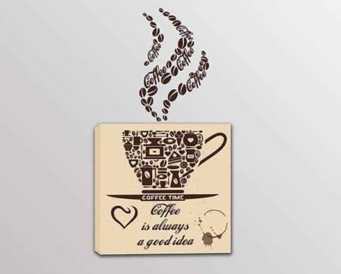 Il quadro riporta la frase: “Coffee is always a good idea” con l’immagine di una particolare tazzina di caffè.
