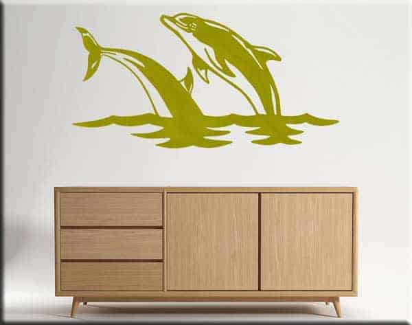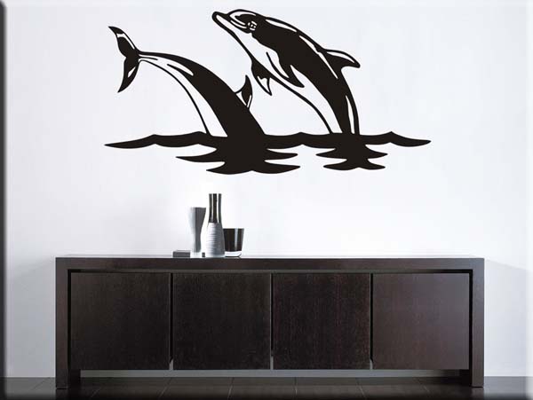 Adesivi murali salto delfini mare sono particolari decorazioni adesive da muro raffiguranti due delfini che saltano nel mare.