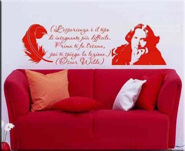 Decorazione murale citazione Oscar Wilde è composta da adesivi da parete raffiguranti una penna, il volto del famoso aforista e poeta irlandese con uno dei suoi famosi aforismi: