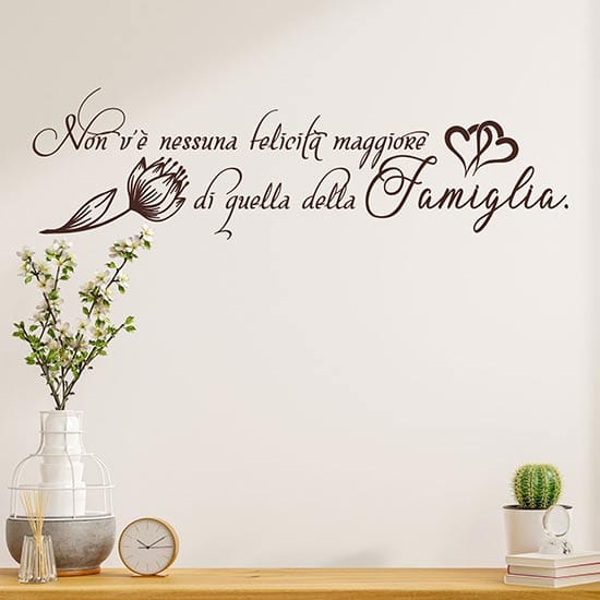 Frase adesiva da parete sulla famiglia, wall stickers di design per decorare con originalità e contenuto le tue pareti.