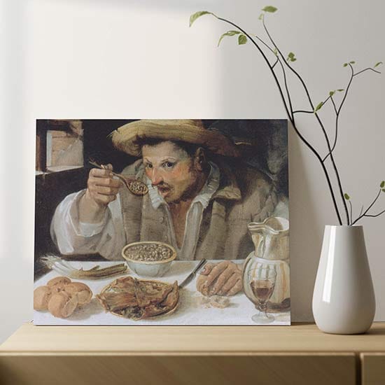 Il Quadro famoso il Mangiafagioli di Carracci è una riproduzione su tela di una delle opere più celebri della pittura italiana del XVI secolo.