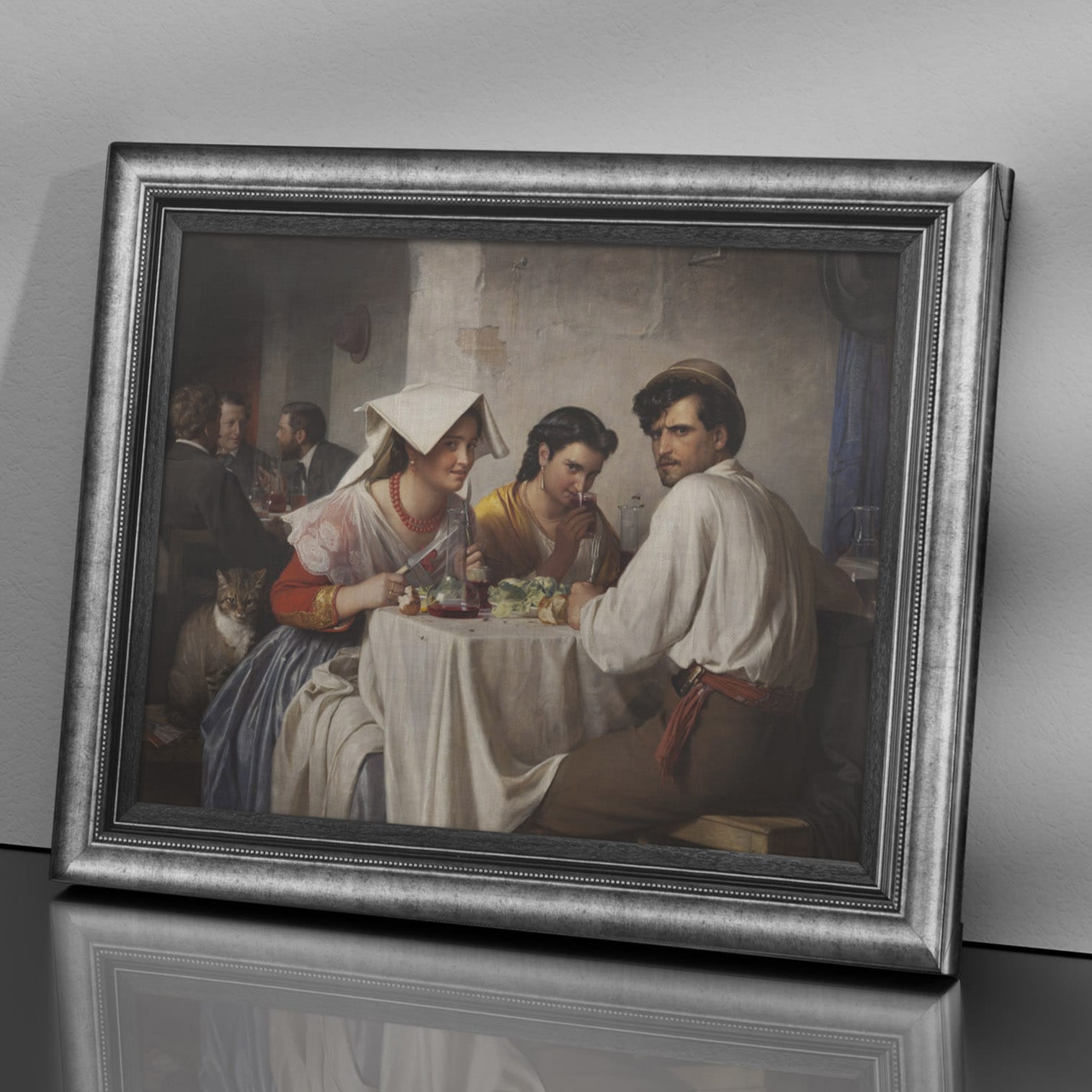 Si tratta di una stampa ad alta definizione su tela, non di un originale. L’opera riproduce fedelmente il dipinto “In un’osteria romana” di Carl Heinrich Bloch.