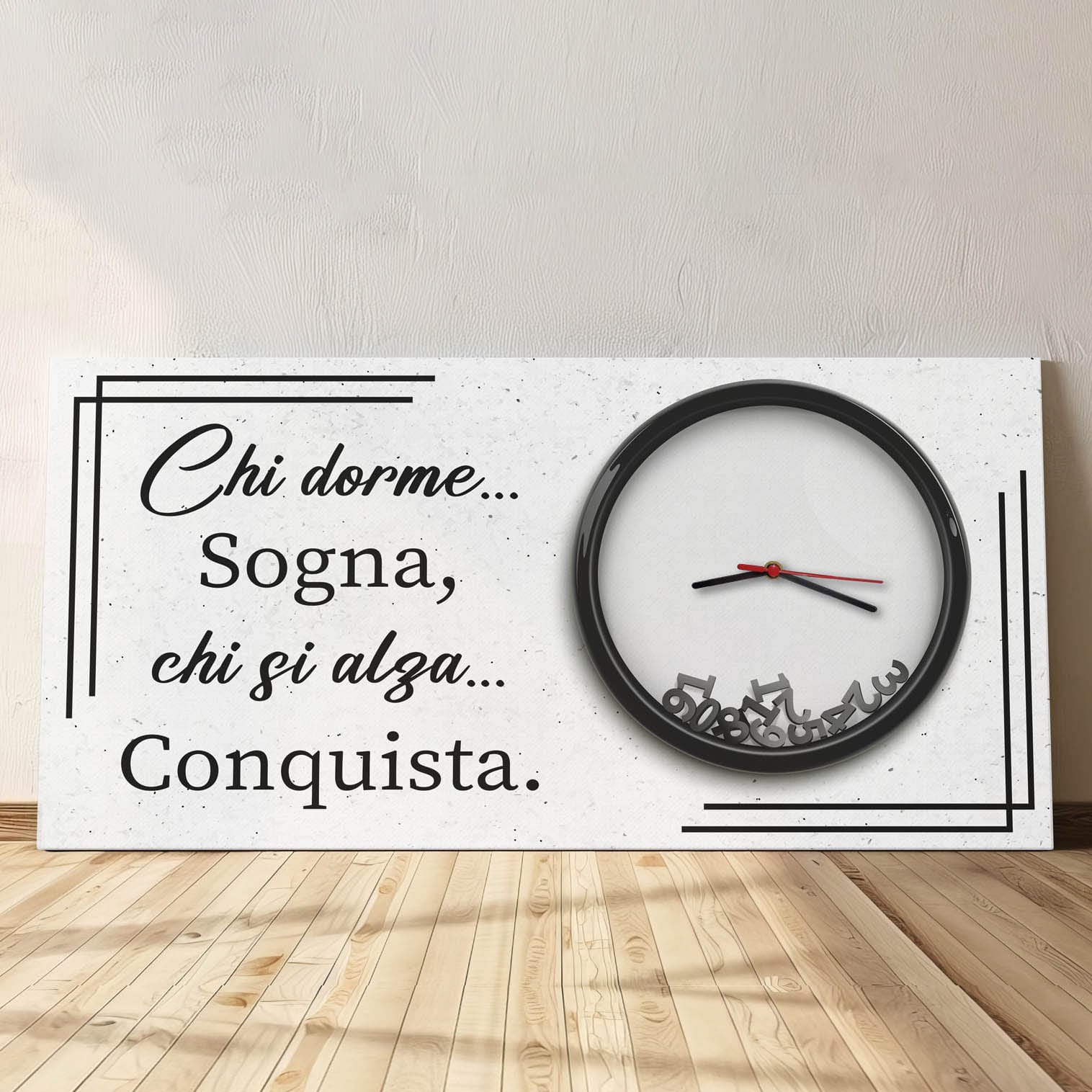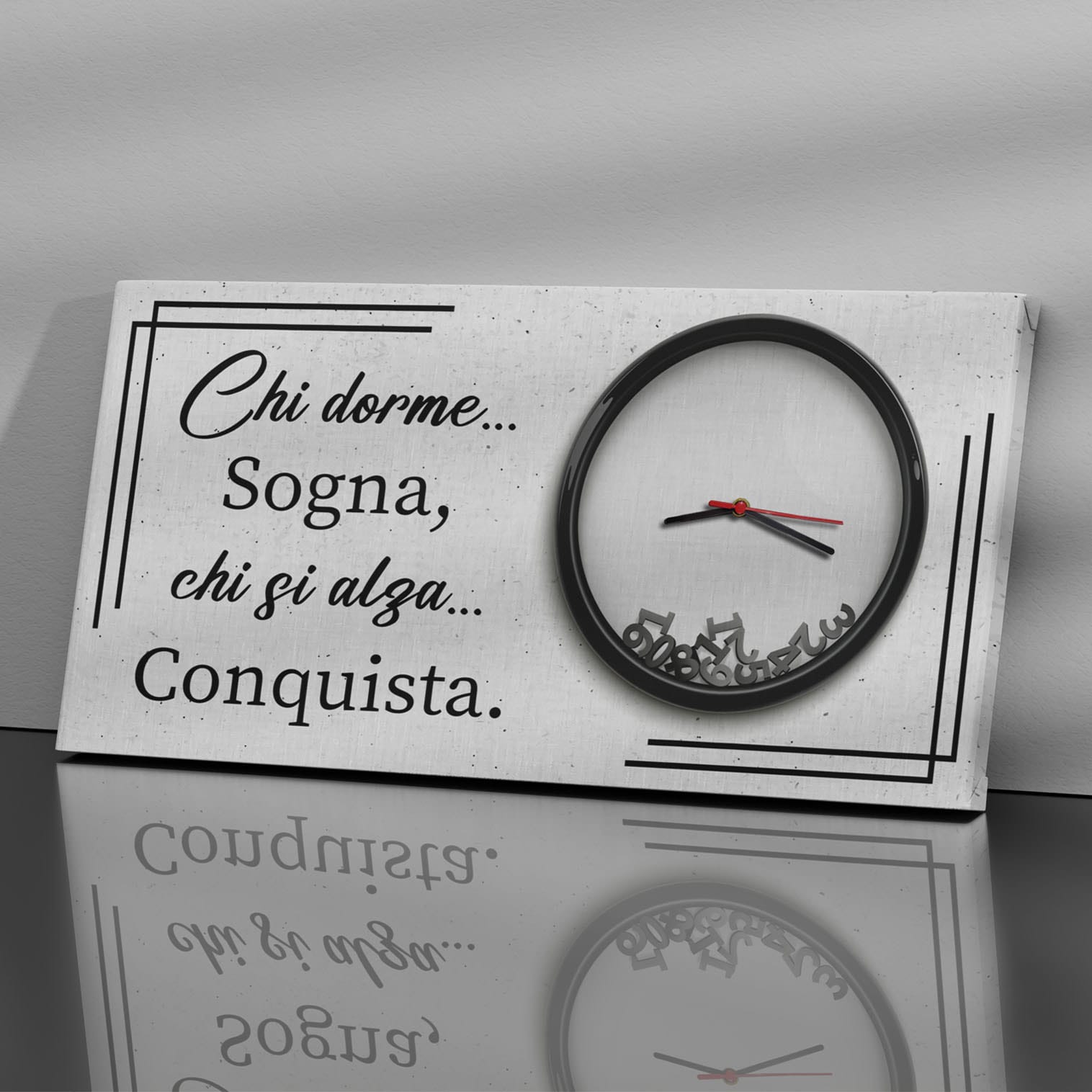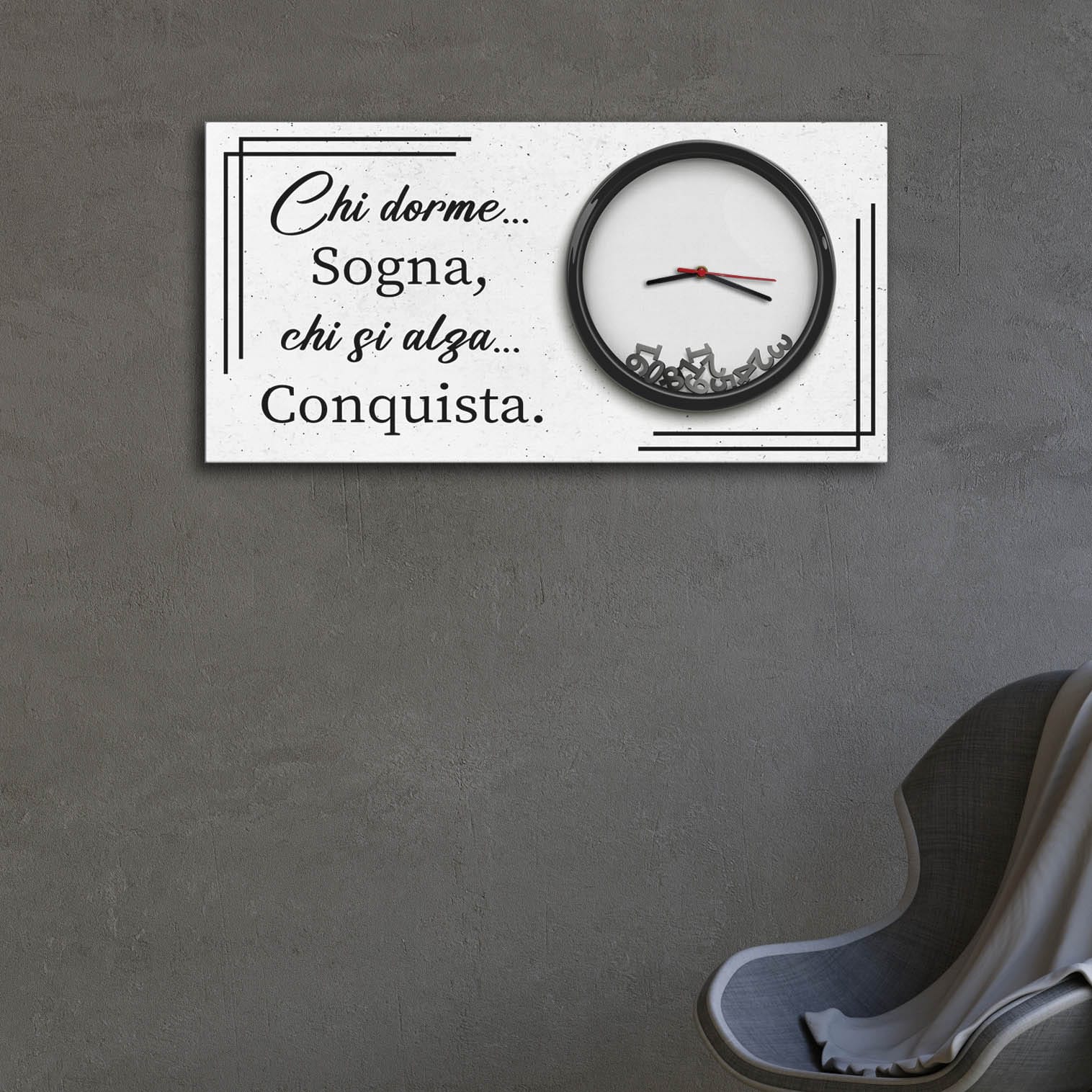 Il quadro orologio da parete con scritta motivazionale combina estetica, funzionalità e ispirazione in un unico prodotto pensato per ambienti moderni e raffinati.