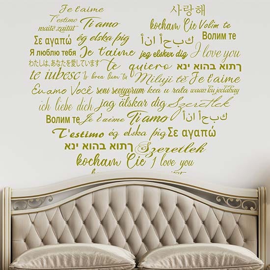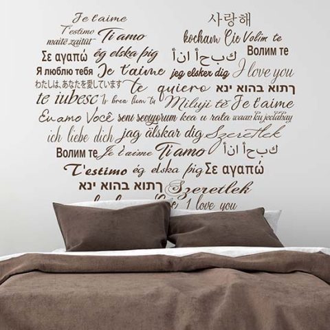 Particolari wall stickers con la frase ” Ti amo ” in tutte le lingue del mondo che insieme formano un grande cuore.
