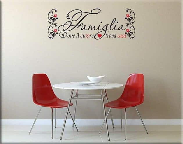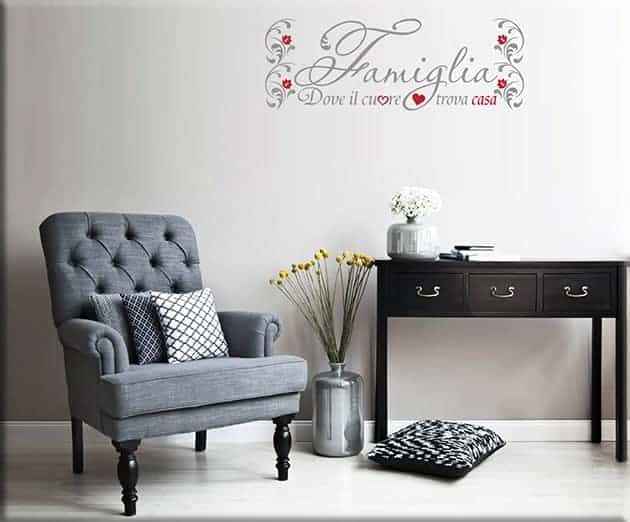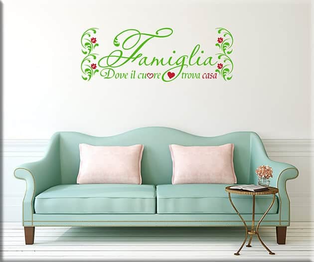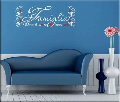Per concludere, non ti resta che individuare la parete che ai tuoi occhi appare spenta, per poterla decorare con i tuoi wall stickers frase cuore famiglia.